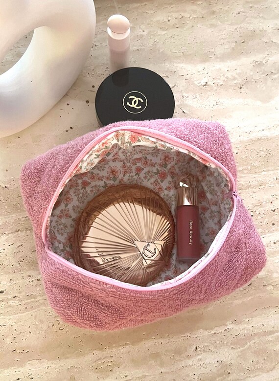 Makeup Bag Terrycloth Towelling Quilted Cosmetics Bag Teddy Old Rose Toiletry Travel Bag Etsy Uk