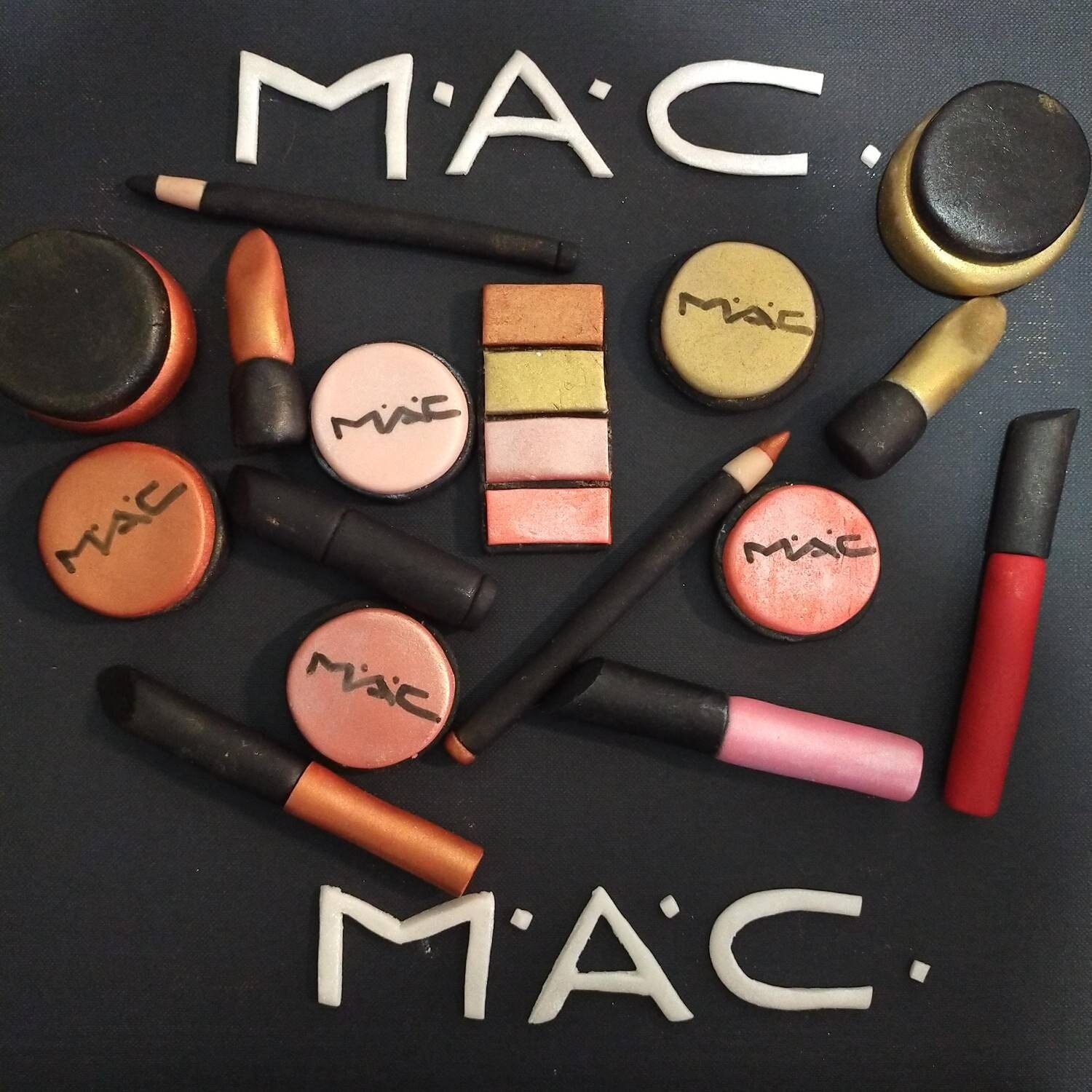 3d Edible Fondant Mac Makeup Cake Topper Set 15 Pieces Etsy Uk